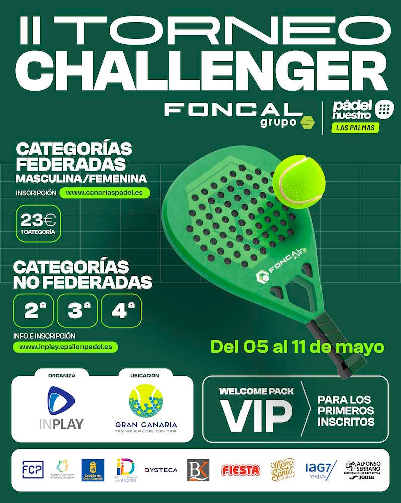 Bienvenidos al Segundo Torneo Challenger Foncal Gran Canaria Center, organizado por InPlay Eventos.